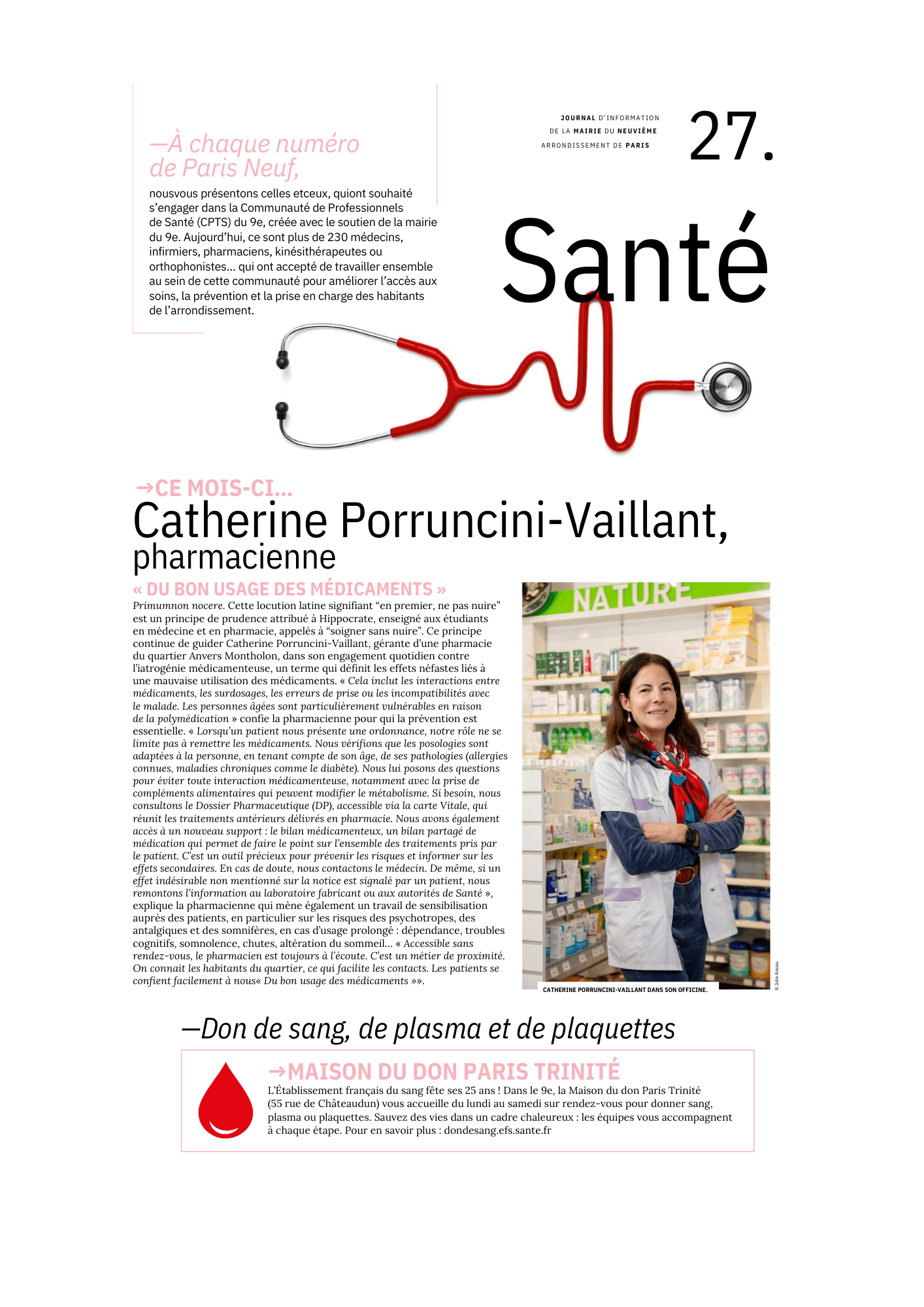 Accueil - Actualités - Informations - Interview du Dr C. Porruncini-Vaillant, pharmacienne dans le 9e arrondissement Interview du Dr C. Porruncini-Vaillant, pharmacienne dans le 9e arrondissement